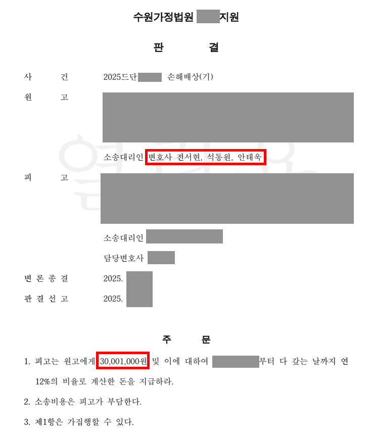 이번 사건처럼 청구 전액이 인정되는 사례는 흔치 않습니다.