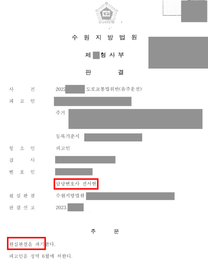 저는 이 사건과 전력, 기간, 양상이 비슷한 음주운전 사건들을 찾아서 형량을 비교하고, 1심의 형이 이례적으로 무겁다는 것을 적극적으로 소명하였습니다.