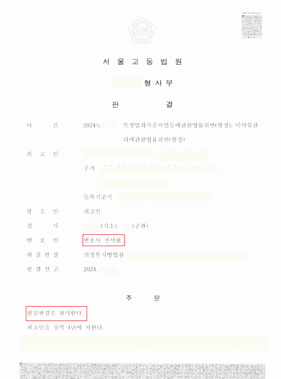 단순 투약이 아닌 마약 판매에 연루되는 경우, 검찰에서도 높은 구형을 결정하고 있고, 법원에서도 무거운 처벌이 이루어지고 있는 추세입니다. 원심을 파기하고 항소심에서 감형을 받아내는 것도 매우 어려운 일입니다.
